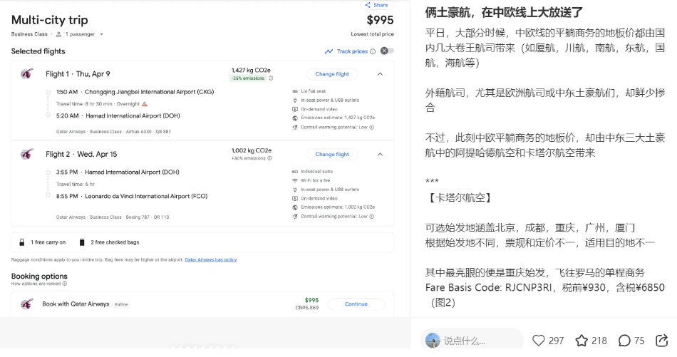 就在中东空域受影响前,卡塔尔航空和阿提哈德航空等中东航司,还在中欧航线上大放价,如今,在中东航司航班受影响之下,取而代之的是翻倍暴涨的票价和一票难求的窘迫。