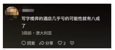 不料,评论区几乎是一边倒地不看好。比如,有网友反手就抛出一句:开酒店,我就没听过还能逆风翻盘的。