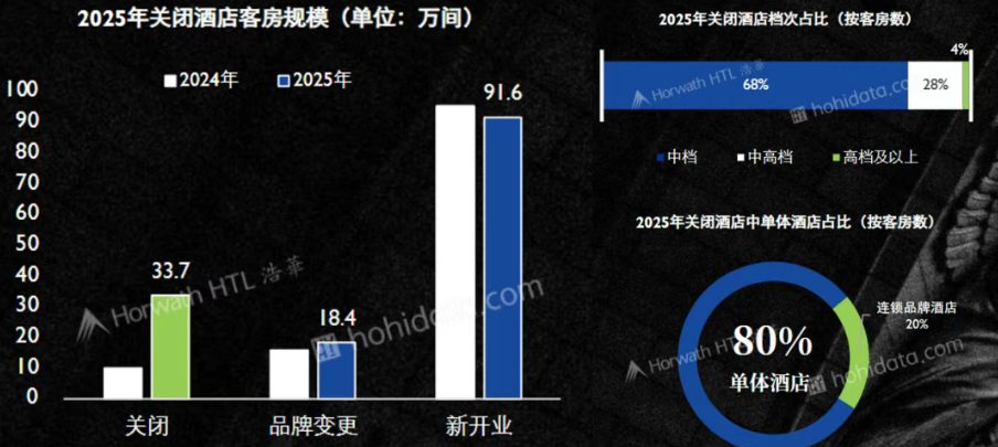 2025年,全中国约有1,897家中档及以上酒店发生品牌变更,翻牌项目占比维持高位。未来十年,仅一二线城市就将释放约88.6万间客房的存量改造空间。